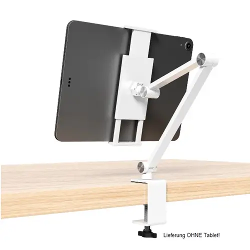 • Vielseitig: Der stabile Halterarm ist auf Wunsch verstellbar, neigbar, schwenkbar und 360° drehbar für eine optimale Positionierung. So kannst du Filme bequem im Querformat schauen oder Texte in der Hochformat-Position lesen.