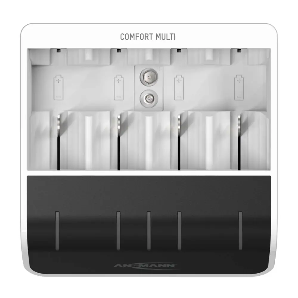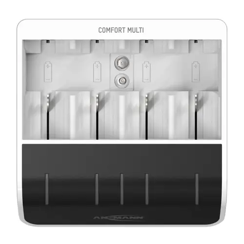 Dank der intelligenten "PERFECT 7"-Ladetechnologie sorgt das Comfort Mini präzise und schnell für volle Akkus. Die vollautomatische 7-Stufen-Ladung maximiert die Lebensdauer und die Leistung Ihrer Akkus erheblich. Das innovative Ladeverfahren basiert auf neuesten Erkenntnissen aus der Akku-Forschung und berücksichtigt eine Vielzahl von individuellen Parametern. In Kombination mit einer geeigneten Powerbank kann das Ladegerät auch komplett mobil betrieben werden und ist somit sehr flexibel einsetzbar. Nicht nur über eine Powerbank, sondern auch über jeglichen anderen USB-Anschluss kann das Ladegerät angeschlossen werden. Es funktioniert nach dem einfachen Prinzip einlegen und loslegen. Die übersichtliche Statusanzeige ermöglicht eine intuitive Bedienung. Durch die einfache 3-farbige LED-Anzeige ist das Ablesen des jeweiligen Zellen-Status kinderleicht.Geeignet für Micro AAA, Mignon AA, Baby C, Mono D und 9V E-Block AkkusDas intelligente Schnellladegerät kann bis zu vier Akkus der Größen Mignon, Micro, Baby, Mono sowie einen 9V E-Block laden. Die Rundzellen-Akkus können dabei gemischt in einen beliebigen Ladeschacht eingelegt werden. Jede Zelle wird während des Ladevorgangs einzeln überwacht und individuell bis zur maximalen Kapazität geladen.KapazitätsschnelltestDirekt nach dem Einlegen ermittelt der Kapazitätsschnelltest die Restladung Ihres Akkus und zeigt diese im LED-Panel für 5 Sekunden an. Die automatische Erkennung leistungsschwacher Akkus vermeidet negative Überraschungen.Schonende VorladungEin schwacher oder tiefentladener Akku wird bei Bedarf mit geringerem Strom vorgeladen.Akku AnalyseDas Akkuverhalten der Zelle wird analysiert und ausgewertet, um festzustellen, ob diese noch zuverlässig nutzbar oder defekt ist.SchnelllademodusDas Comfort Multi von ANSMANN lädt Ihre kompatiblen NiMH-Akkus mit bis zu 800 mA schnell und gleichzeitig kontrolliert auf. Das spart Ihnen nicht nur Leerlaufzeit, sondern ermöglicht auch, mit insgesamt weniger Akkus auszukommen.IQ-AbschaltungGleich mehrere Schutzmechanismen bewahren die eingelegten Akkus vor Überhitzung und Überladung. So können Sie sich bequem zurücklehnen, während Ihr Akku wieder auf volle Leistungsfähigkeit geladen wird.Top-Off-LadungBei dieser Stufe wird sichergestellt, dass der Akku schonend zu 100% vollgeladen wird.ErhaltungsladungDer Akku wird mittels Ladeimpulse in vollständig geladenem Zustand gehaltenFarbe: weiß/schwarzVerpackung: KartonEingangsspannung: 5V DCLadbare Zellen: Micro AAA , Mignon AA, Baby C , Mono D , 9V E-BlockZellchemie: Nickel-Metallhydrid Lieferumfang: Comfort Multi, 100cm USB-Kabel, Bedienungsanleitung