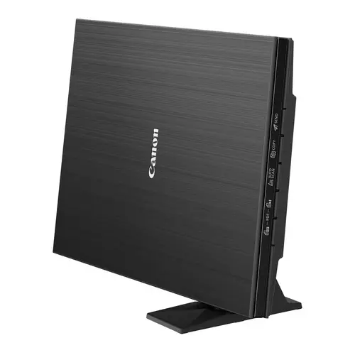 Der Halter für senkrechte Aufstellung und Bedienung spart wertvollen Platz auf dem Schreibtisch. Das schicke Design des kompakten Scanners fügt sich in jede Heim- oder Büroumgebung ein.