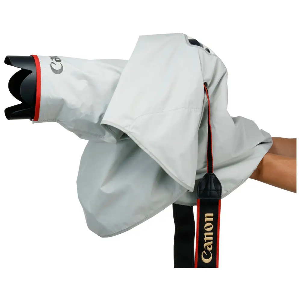 Dieser Überzug schützt Ihre EOS Kamera vor Regen, damit Sie auch bei schlechtem Wetter weiter fotografieren können. Der Regenschutz ist auch ideal bei Aufnahmen von Wassersportarten oder in tropischen Umgebungen, wo er Spritzer und hohe Luftfeuchtigkeit von der Kamera fernhält. Und selbst wenn man es eilig hat, ist er einfach anzubringen. Der ERC-E5 ist in den Größen Large, Medium und Small erhältlich und bietet jeweils große und kleine Augenmuscheln – so ist für jede EOS DSLR-Objektiv-Kombination die passende Größe verfügbar.In der Größe Large ist der Regenschutz passend für EOS DSLRs mit:• EF 400mm 1:2,8L IS II USM• EF 500mm 1:4L IS II USM• EF 600mm 1:4L IS II USM• EF 800mm 1:5,6L IS USMHauptmerkmale• Das obere und rückseitige Display der Kamera sind durch transparente Fenster gut sichtbar• Aus robustem und trotzdem weichen Schutzmaterial• Schützt vor Regen, Feuchtigkeit und gelegentlichem Spritzwasser• Abmessungen: 1.070 x 1.000mm (Large)• In drei Größen verfügbar – passend für jede Kamera-Objektiv-Kombination• Zwei verschiedene Augenmuscheln im Lieferumfang zur Anpassung an praktisch jede EOS Kamera• Aufbewahrungsbeutel im Lieferumfang• Einfach zu verwenden und zu entfernen