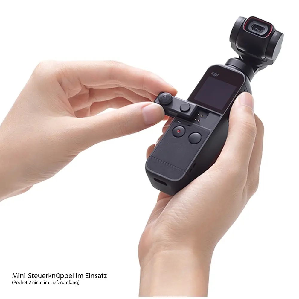 Bietet eine direkte und bequeme Steuerung von Gimbal und Zoom. Die Tasten sind bequem zu drücken und reagieren schnell. Mit der rechten Taste können Sie den Gimbal-Modus schnell umschalten. Produktmerkmale • neigen und schwenken steuern • Zoom (nur bei DJI Pocket 2) • Gimbal-Modi wechseln Technische Daten • Abmessungen: 27,6 × 13,2 × 10,5 mm • Gewicht: 2,1 g • Kompatibilität: DJI Pocket 2, Osmo Pocket • direkte und bequeme Steuerung von Gimbal und Zoom, Abmessungen: 27,6 × 13,2 × 10,5 mm, Gewicht: 2,1 g Lieferumfang: 1x DJI Pocket 2 Mini-Steuerknüppel