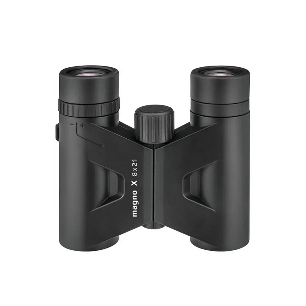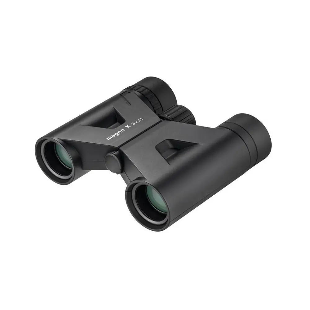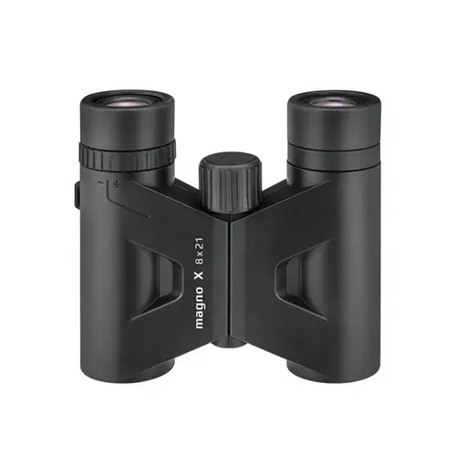 Hauptmerkmale• BK-7-Prismen und Mehrschichtvergütung sorgen für eine scharfe und farbtreue Abbildung• Sehr klein, leicht und handlich – geeignet für Spontanausflug in die Natur, Urlaub oder Städtetrip• Das kompakte und außergewöhnliche Design macht das magno® X zum Begleiter für jede Gelegenheit• Brillenträger-Okulare bieten auch (Sonnen-)Brillenträgern ein optimales Sehfeld• Preiswertes Fernglas für eine breite ZielgruppeSPEZIFIKATIONENBauart: DachkantfernglasVergrößerung: 8 xObjektiv-Durchmesser: 21 mmNahpunkt: 2,5 mGewicht: 180 gSehfeld m/1000m: 105Fernglasmaße (HxBxT): 95 x 105 x 35 mmPupillenschnittweite: 12Pupillendistanz: 56/74Austrittspupille: 2,6 mmGeometrische Lichtstärke: 6,9Dämmerungszahl: 13,0Prismen: BK-7Vergütung: Magenta-VollvergütungWasserdicht: NeinStickstoffgefüllt: NeinWeitwinkeloptik: NeinBrillenträgerokulare: JaPhasenkorrigiert: NeinExtra-Low-Dispersion Glas: NeinLieferumfang1x magno X 8x21 Fernglas1x Tasche1x Tragekordel
