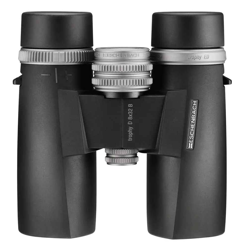 Hauptmerkmale• Extra großes Sehfeld: Hochwertige Weitwinkeloptik sorgt für mehr Sichtfreiheit und höchsten Beobachtungskomfort.• Besonders plastische, farbtreue Abbildung: dank mehrschichtvergüteter Hochleitungs-Linsen aus speziellem Extra-Low-Dispersion Glas.• Hohe Brillanz durch phasenkorrigierte BaK-4-Prismen mit dielektrischer Verspiegelung.• Äußerst robust: Hochwertige Stellräder aus Metall und einem schlagfesten Magnaliumgehäuse garantieren lange Beobachtungsfreude.• Wetterfest, da wasserdicht und stickstoffgefüllt.• Brillenträger-Okulare bieten auch (Sonnen-)Brillenträgern ein optimales Sehfeld.• Stabiles Stativgewinde sorgt jederzeit für wackelfreie Beobachtungsfreude.SPEZIFIKATIONENBauart: DachkantfernglasVergrößerung: 8 xObjektiv-Durchmesser: 32 mmNahpunkt: 2 mGewicht: 535 gSehfeld m/1000m: 136Fernglasmaße (HxBxT): 125x118x50 mmPupillenschnittweite: 16Pupillendistanz: 54/74Austrittspupille: 4,0 mmGeometrische Lichtstärke: 16,0Dämmerungszahl: 16,0Prismen: BaK-4Vergütung: Mehrschicht-VollvergütungWasserdicht: JaStickstoffgefüllt: JaWeitwinkeloptik: JaBrillenträgerokulare: JaPhasenkorrigiert: JaExtra-Low-Dispersion Glas: JaLieferumfang1x trophy D 8x32 B ED Fernglas1x Komfort-Trageriemen mit Schnellverschluss1x hochwertige Tasche4x Staubschutzkappen