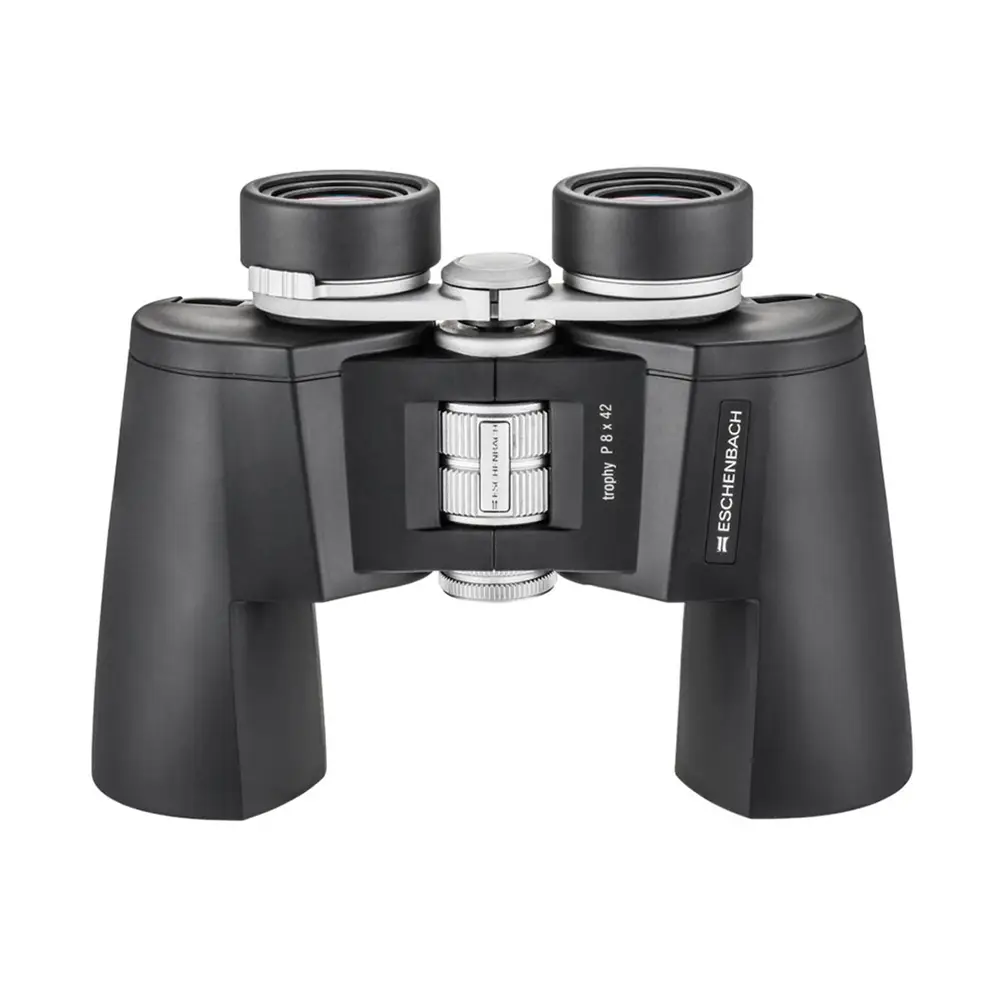 Hauptmerkmale • Extragroßes Sehfeld und hochwertige Weitwinkeloptik sorgen für mehr Sichtfreiheit und höchsten Beobachtungskomfort • Scharfe, kontrastreiche und farbtreue Abbildung durch Mehrschicht-Vollvergütung und BaK-4-Prismen • Besonders plastische Bilddarstellung aufgrund der Porro-Fernglasgeometrie • Innovatives Design sorgt für modernen Look und optimale Handhabung • Wetterfest, da wasserdicht • Stickstofffüllung verhindert das Beschlagen der Innenoptik selbst bei großen Höhen- und Temperaturunterschieden • Brillenträger-Okulare bieten auch (Sonnen-)Brillenträgern ein optimales Sehfeld • Dämmerungszahl: 18,3SPEZIFIKATIONEN Bauart: Porro-Fernglas Vergrößerung: 8 x Objektiv-Durchmesser: 42 mm Nahpunkt: 5 m Gewicht: 951 g Sehfeld m/1000m: 142 Fernglasmaße (HxBxT): 136 x 194 x 63 mm Pupillenschnittweite: 20 Pupillendistanz: 53/74 Austrittspupille: 5,3 mm Geometrische Lichtstärke: 27,6 Dämmerungszahl: 18,3 Prismen: BaK-4 Vergütung: Hochtransmission-Mehrschicht-Vergütung Wasserdicht: Ja Stickstoffgefüllt: Ja Weitwinkeloptik: Ja Brillenträgerokulare: Ja Phasenkorrigiert: Nein Extra-Low-Dispersion Glas: NeinLieferumfang 1x trophy P 8x42 Fernglas 1x Trageriemen mit Schnellverschluss 4x Staubschutzkappen 1x Tasche