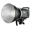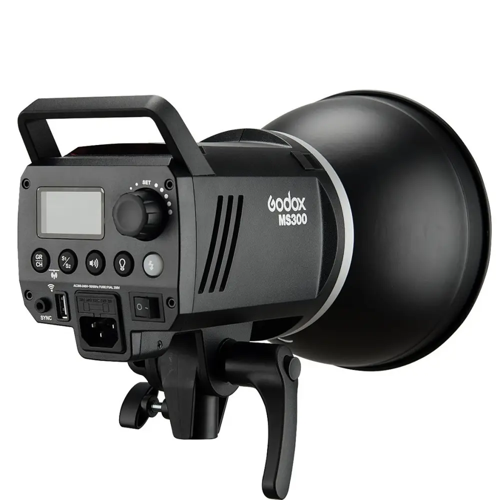Mit einer Leitzahl von 58 und einer Leistung von 300Ws ist das MS300 Studioblitzgerät eine 5800K Blitzquelle. Der Studioblitz hat ein 150W Halogen Einstelllicht. Die Wiederaufladezeit beträgt 0,1 bis 1,8 Sekunden, die Blitzdauer beträgt nur 1/2000 Sek. Die Leistung ist von 1/32 bis zur vollen Leistung variabel, während das Einstelllicht in 20 Stufen einstellbar ist. Zu den Auslöseoptionen gehören ein Synchronkabel, ein optischer Anschluss, eine Testtaste und eine drahtlose Stromversorgung. Das MS300 ist für den Betrieb mit 200 bis 240 V Wechselstrom ausgelegt. Dank des Bowens Mount ist das Blitzgerät mit mit einer Vielzahl von Lichtformern wie Softboxen und Beauty Dishes kompatibel.