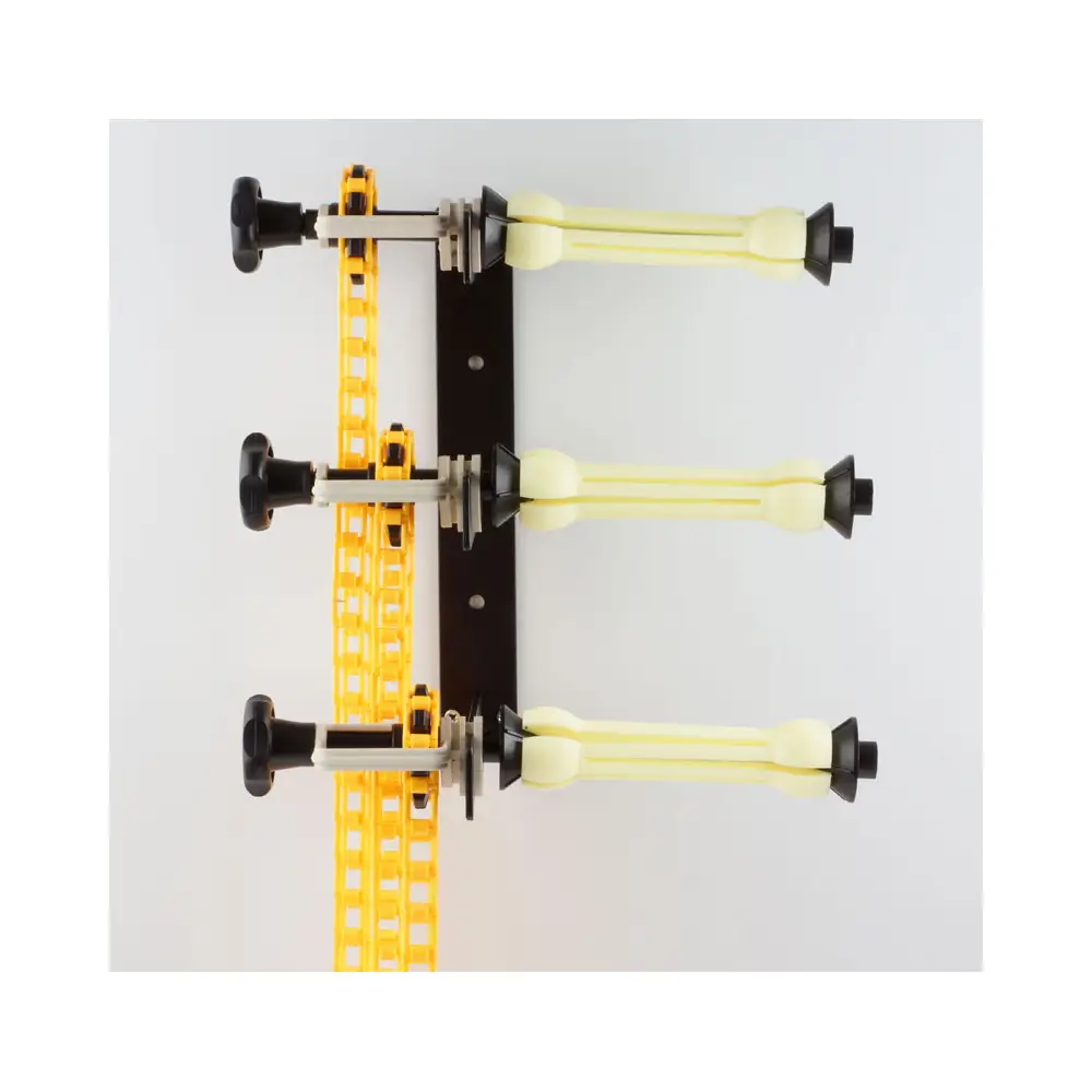 Mit diesem Hintergrundhalter inklusive drei Expan-Paaren lassen sich drei Hintergrundrollen mit einer Durchmesser des Pappkerns von 46 - 78 mm an der Wand oder Decke befestigen. Die Achsen tragen Rollen bis zu einer Breite von 275 cm. Durch die langen Transportketten gestaltet sich das Auf- und Abrollen der Hintergründe spielend einfach. Die praktische Feststellschraube hält den Hintergrund auf gewünschter Position bzw. kann als Bremse mit variablem Wirkungsgrad eingesetzt werden.