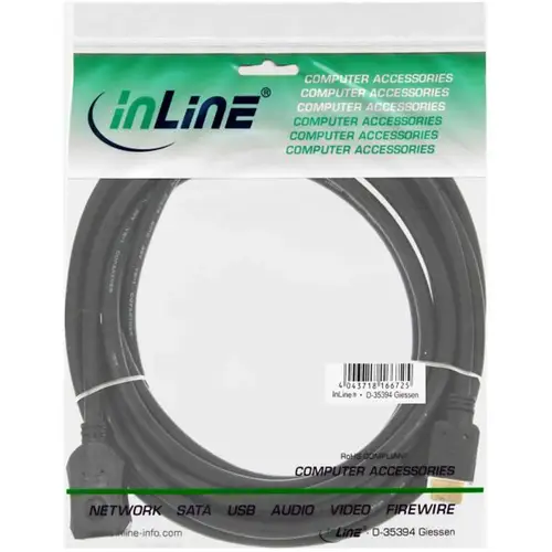 InLine HDMI Verlängerung, HDMI-High Speed Stecker / Buchse, schwarz, 5 m