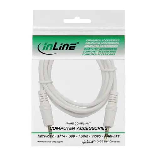 InLine Klinke Kabel, 3,5 mm, 1 m Stecker/Stecker, weiß/gold