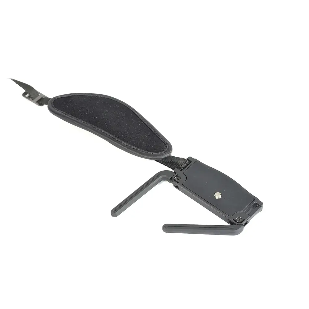 Mit weicher, gepolsterter Handauflage, außen Italienisches Leder, innen weiches Chamude auf Mikrofaserbasis für angenehmen Tragekomfort. Gurtlänge zweifach verstellbar, Handschlaufe auch geeignet für Kameras mit Batteriehandgriff. 1 cm-flache Bodenplatte mit Stativgewinde 1/4", versenkter Befestigungsschraube und rutschfester Kameraauflage.