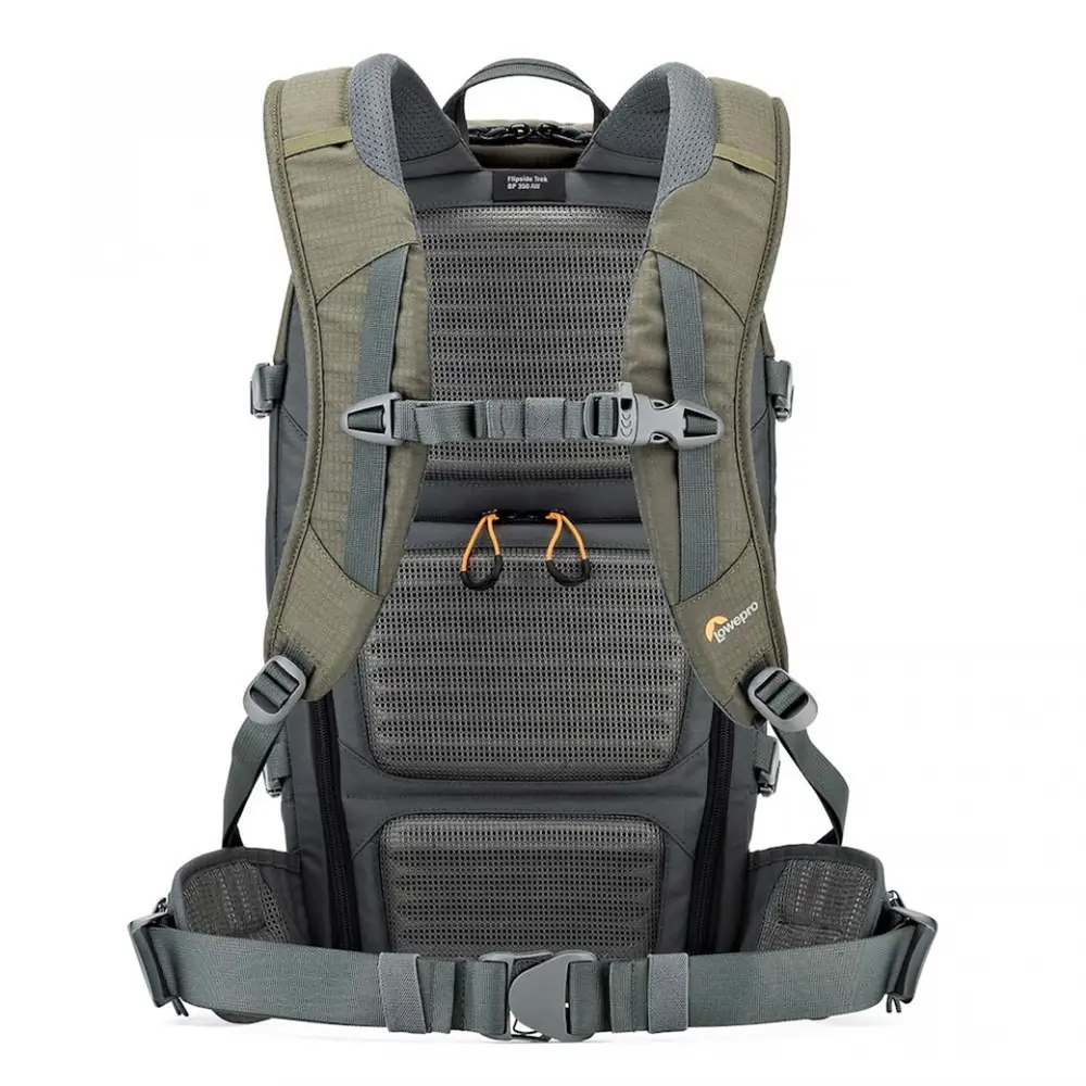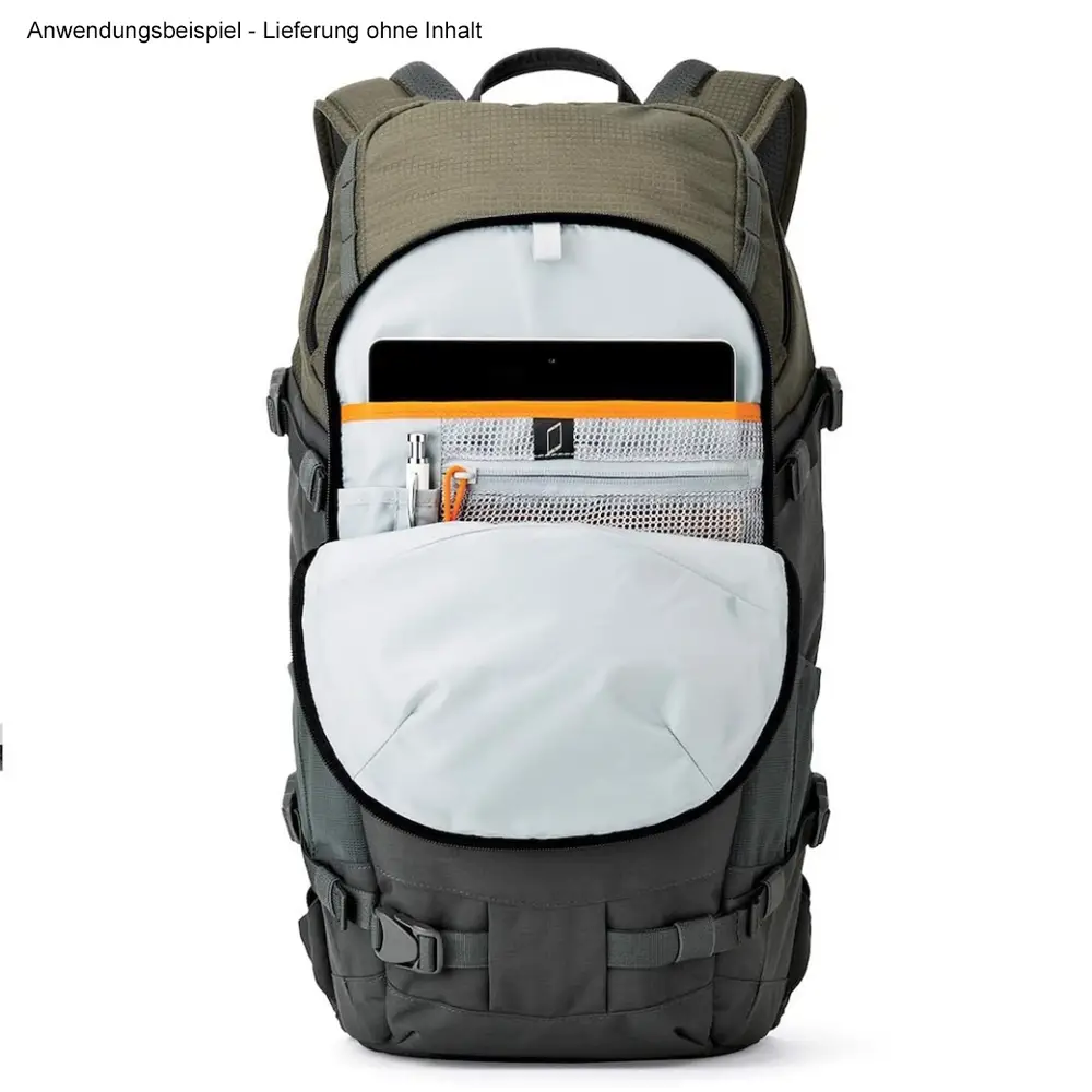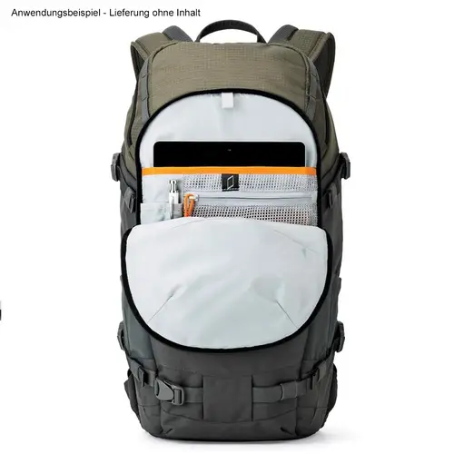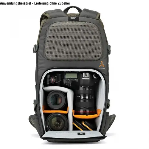 Besondere Merkmale:• Tragekomfort den ganzen Tag: ActiveZone Tragesystem und Gurte für müheloses Tragen• Genau die richtigen Sachen mitnehmen: Keine Kompromisse eingehen mit den separaten Kamera- und Daypackfächern• Während dem Transport auf das Equipment zugreifen: Der Flipside Zugriff über die Rückseite erlaubt die Entnahme der Ausrüstung ohne den Rucksack abzusetzen• Zusätzliche Trageoptionen innen oder außen: Verschiedene Befestigungspunkte ermöglichen es, die Kapazität der Tasche nach außen zu erweitern