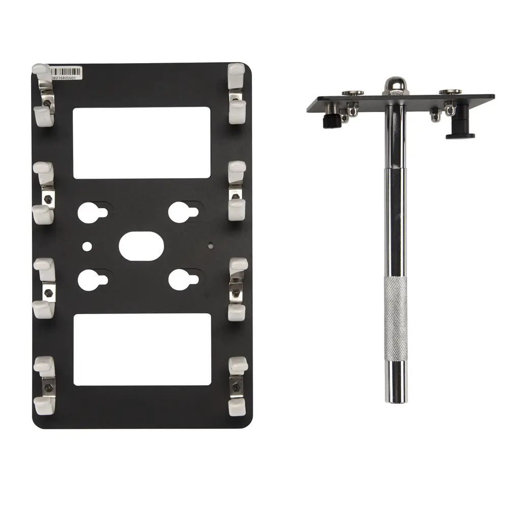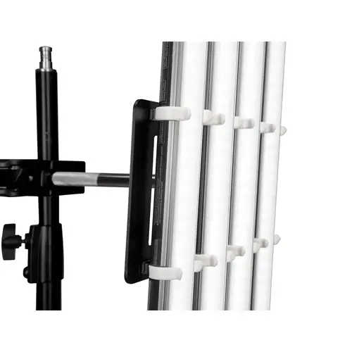 Mit abnehmbarer Halteplatte für vier Farb-Effektleuchten PavoTube, Halteklammern für die Leuchten mit rutschhemmender, oberflächenschonender Beschichtung, stabile Metallausführung, Befestigung auf Stativen und Halterungen mit 16 mm (5/8“)-Normhülse