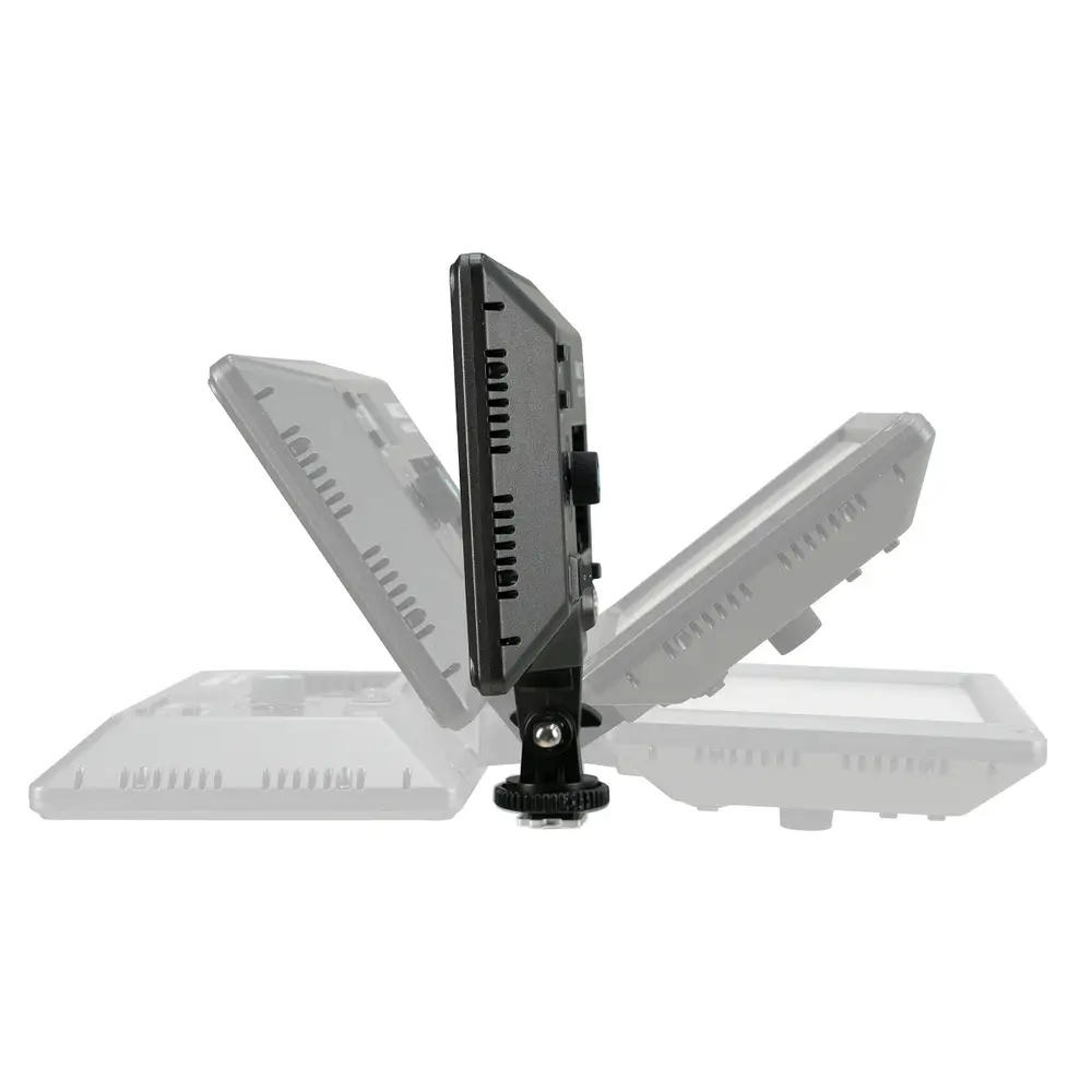 Stufenlos verstellbares Neigegelenk mit Aufsteckfuß für Blitzschuh und Stativgewinde 1/4“.