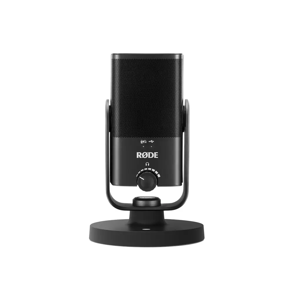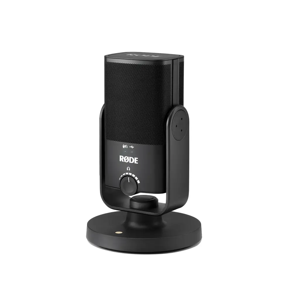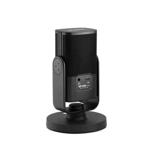 Produktmerkmale• Vorne ist der Lautstärkeregler für den Kopfhörerausgang, der RØDE-Schriftzug verweist auf die korrekte Einsprechrichtung • Auf der Rückseite des NT-USB MINI befinden sich die 3,5-mm-Kopfhörerbuchse und der USB-C-Anschluss • Die Gabelhalterung erlaubt ein bequemes Positionieren des Mikrofons und kann zur Tischnutzung einfach aufgesteckt werden: der robuste Stahlsockel ist nämlich magnetisch • Das NT-USB MINI eignet sich ideal zum Podcasten, Streamen, für Gamer, zur Nachvertonung und natürlich zur Aufnahme von Gesang und Naturinstrumenten Technische Daten• hochwertige Kondensatorkapsel • Richtcharakteristik: Niere • integrierter Popschutz • Grenzschalldruckpegel: 121 dBA (@ 1% THD) • Frequenzgang: 20 Hz – 20 kHz • eingebautes 24 Bit/48 kHz Audio-Interface mit USB-C-Anschluss • Class Compliant – wird sofort vom Rechner erkannt • Kopfhörerausgang: 3,5 mm Stereoklinke mit Lautstärkeregler • schaltbares Direkt-Monitoring für latenzfreies Mikrofonsignal • Systemvoraussetzung: Windows 10/Mac OS 10.12 • Stromversorgung: über USB • schwenkbares Stahlgehäuse mit matt-schwarzer Beschichtung • dank Gabelhalterung perfekt positionierbar • bequem abnehmbarer magnetischer Tischsockel • Maße (BTH): 54,5 x 43,9 x 108,1 mm • Maße Tischsockel: 89,3 mm (Durchmesser), 32,4 mm (Höhe) • Gewicht: 585 g • inkl. USB-C auf USB-A Kabel