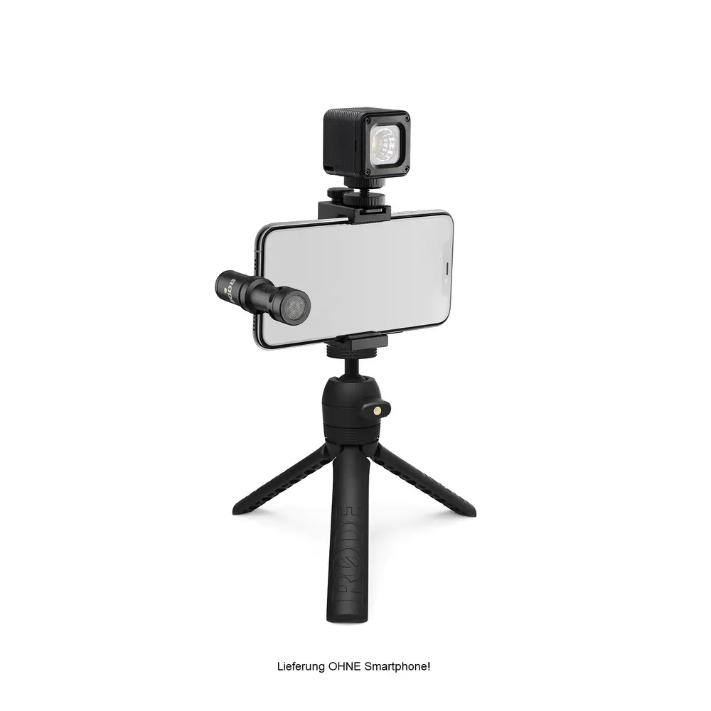 VideoMic Me-CHerzstück des RODE Vlogger Kit USB-C ist ein 8 cm kurzes Kondensator-Richtmikrofon mit robustem und kratzfest beschichtetem Vollmetallgehäuse, welches sich mit dem integrierten USB-C Stecker direkt am Smartphone anschließen und mit dem beiliegenden Gummiclip sicher befestigen lässt.Vorverstärkung und Digitalwandlung erfolgen hochwertig bereits im VideoMic Me-C. Das VideoMic Me-C hat einen Einsprechwinkel von ca. 90° mit guter Richtwirkung nach vorne: seitlich und von hinten einfallender Schall wird weitestgehend ignoriert. Praktisch ist die 3,5 mm-Kopfhörerbuchse auf der Rückseite des Mikrofons. Sofern es die App zulässt, kann man bereits während der Aufnahme die Tonqualität kontrollieren, in jedem Fall spart man sich zum Abhören das Umstecken von Mikrofon auf Kopfhörer. Im Lieferumfang findet sich auch der Deluxe-Windschutz WS9, der sich für Außenaufnahmen bequem aufstecken lässt und störende Luftgeräusche bis ca. Windstärke 5 herausfiltert. Das VideoMic Me-C funktioniert mit allen Smartphones, die einen USB-C Anschluss haben und Android 10 oder neuer verwenden.SmartGripEine robuste Halterung aus Metall mit gummierten Klemmbacken für Smartphones von 65 mm bis 85 mm Breite. Der SmartGrip hat drei 1/4"-Stativgewinde - zwei seitlich und eines im Sockel -, um das Smartphone sowohl hochkant als auch quer verwenden zu können. Oben hat der SmartGrip einen integrierten Blitzschuh, um die Videoleuchte MicroLED bzw. den Doppel-Blitzschuhadapter DCS-1 zu montieren.Tripod 2Ein je nach Anwendung 15 cm bis 18 cm hohes Miniaturstativ mit Kugelkopf und 1/4"-Stativgewinde, welches mit eingeklappten Füßen auch einen erstklassigen Handgriff ergibt. Verwendet man es als Tischstativ, kann man die Füße je nach Bedarf halb oder voll ausklappen. Das 180 g schwere Tripod 2 wird aus Polymer-Spritzguss gefertigt, die Belastbarkeit liegt bei maximal 2 kg.MicroLEDEine Miniatur-Videoleuchte mit integriertem Akku, welche sich je nach gewählter Helligkeit bis zu 4 Stunden nutzen lässt. Das Aufladen erfolgt über USB-C, die entsprechende Buchse findet sich seitlich hinter einer klappbaren Abdeckung, ein USB-C auf USB-A Kabel ist im Lieferumfang enthalten. Im Studio kann die MicroLED auch dauerhaft über USB-C mit Strom versorgt werden. Die Helligkeit lässt sich in vier Stufen von 60 bis 300 Lumen einstellen. Mitgeliefert wird auch ein Diffusor-Aufsatz mit 8 Wechselfolien in verschiedenen Farben.USB-C Vlogger Kit bestehend aus1x VideoMic Me-C - Kondensator-Richtmikrofon • zum Anschluss an Smartphones mit USB-C Anschluss • Aluminiumgehäuse mit kratzfestem Keramiküberzug • integrierter USB-C Stecker plus Halteclip • 1/2"-Kondensatorkapsel • Richtcharakteristik: Niere • Einsprechwinkel: 90° • Übertragungsbereich: 20 Hz – 20 kHz • Grenzschalldruckpegel: 115 dB SPL • Digitalwandlung: 24 Bit/48 kHz • sendefähige Tonqualität • integrierter 3,5 mm Kopfhöreranschluss1x Tripod 2 - Tischstativ/Handgriff mit Kugelkopf, 1/4"-Gewinde1x SmartGrip - Klemmhalterung für Smartphones mit 65 bis 85 mm Breite, drei 1/4"-Gewinde1x MicroLED - LED-Videoleuchte zur Blitzschuhmontage, bis zu 4 Stunden Akkulaufzeit1x Diffusor-Aufsatz mit 8 wechselbaren Farbfolien1x WS9 Deluxe-Fellwindschutz1x USB-C auf USB-A Kabel