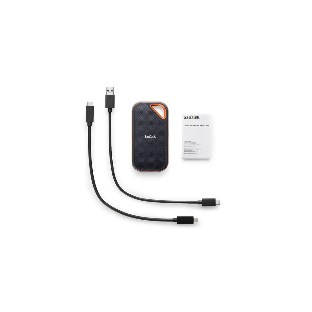 Abmessungen (LxBxH): 110,26 mm x 57,34 mm x 10,22 mmRobust genug für unterwegs Fallsicherheit aus bis zu zwei Metern, IP-55-Wasser- und -Staubschutz5 und ein praktischer Karabinerhaken zum Befestigen an Ihrem Gürtel oder Rucksack machen das Laufwerk zu einem robusten Begleiter auf Reisen.Verschlüsselung für erweiterte Sicherheit Dank des integrierten Passwortschutzes mit 256-Bit-AES-Hardwareverschlüsselung sind private Inhalte geschützt.4Speicher für Profis Aus dem Hause SanDisk, der Marke, der Profifotografen aus aller Welt ihre anspruchsvollsten Aufträge anvertrauen.Fußnoten 1 1 TB = 1.000.000.000.000 Byte. Die tatsächlich nutzbare Kapazität ist geringer. 2 Lese- und Schreibgeschwindigkeiten von bis zu 2.000 MB/s. Angaben basieren auf unternehmensinternen Tests; die Leistung kann je nach Host-Gerät, Schnittstelle, Nutzungsbedingungen und anderen Faktoren geringer sein. 1 MB = 1.000.000 Byte. 3 Siehe www.sandisk.com/wug 4 Der Passwortschutz verwendet 256-Bit-AES-Verschlüsselung und wird unterstützt von: Windows 8, Windows 10 und macOS v10.9+ (für Mac muss Software heruntergeladen werden; siehe www.sandisk.com/secureaccess) 5 Basierend auf unternehmensinternen Tests. IPEC 60529 IP 55: Wasserdicht für bis zu 3 Minuten unter fließendem Wasser (30 kPa); begrenzter Kontakt mit Staub wirkt sich nicht auf den Betrieb aus. SSD muss vor dem Einsatz sauber und trocken seinLieferumfang 1x Extreme PRO Portable SSD 1x USB-C-auf-USB-C-Kabel 1x USB-C-auf-USB-A-Adapter