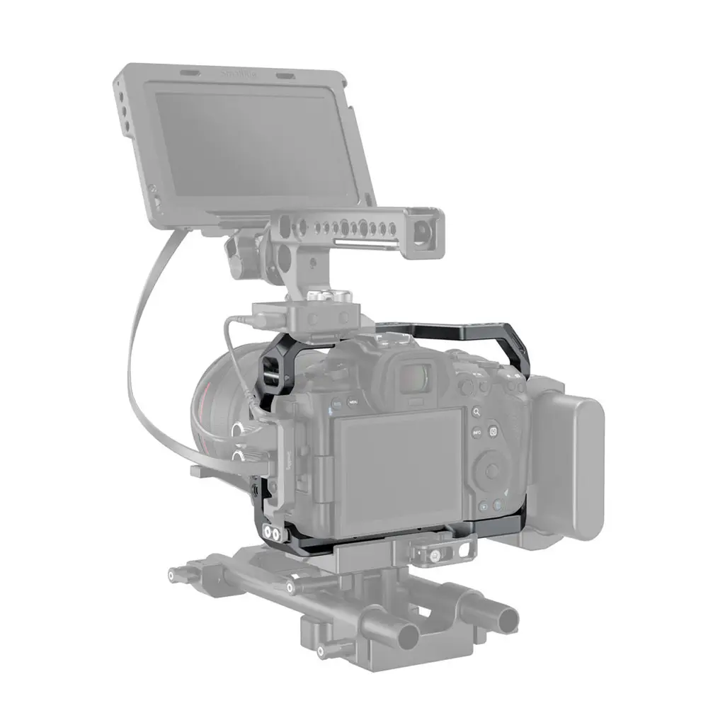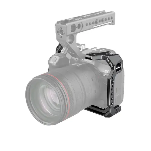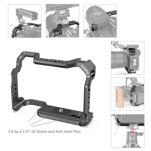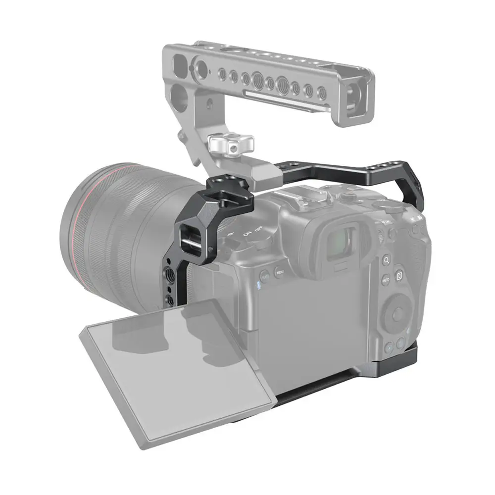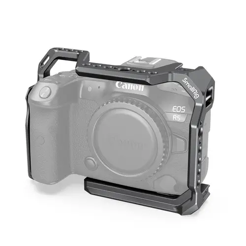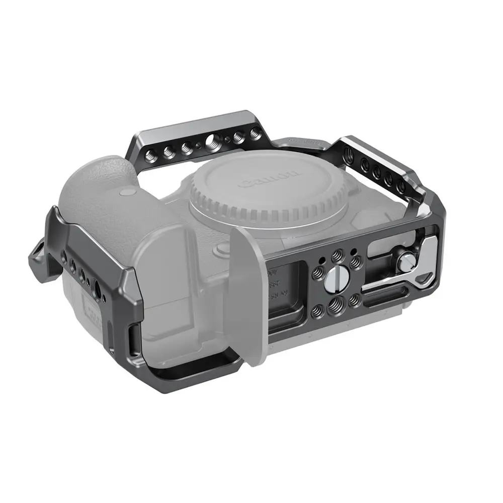 Es gibt außerdem eine oben eingebauten Nato-Rail, einen Cold Shoe-Mount und mehrere 1/4"-20 und 3/8"-16 Gewindebohrungen. Dieser formschlüssige Aluminiumkäfig verfügt über mehrere ARRI-Halterungen, um zu verhindern, dass sich das Zubehör verdreht, wenn es am Käfig montiert wird. Der Käfig enthält zusätzlich zur 1/4"-20-Kamera-Befestigungsschraube zwei Verdrehsicherungsstifte auf der Grundplatte, damit sich Ihre Kamera nicht im Cage bewegen kann.Hauptmerkmale:• Mit einer 1/4"-20 Schraube und Verdrehsicherungsstiften fest an der Kamera befestigt• 1/4"-20 & 3/8"-16 Gewinde und ARRI-Halterungen• Integrierter Nato Rail und Cold Shoe Mount• Eingebauter Schraubendreher untenKompatibilität u.a.:• Canon EOS R5• Canon EOS R6Lieferumfang:1x Kamera-Cage 2982