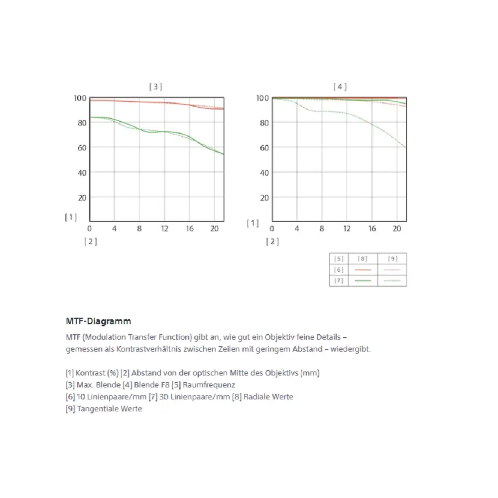In den Strahlengang des Objektivs wurden drei ED-Glaselemente (Extra-low Dispersion) integriert, die axiale und laterale chromatische Abbildungsfehler minimieren und für optimale Schärfe im gesamten Bild sorgen.
