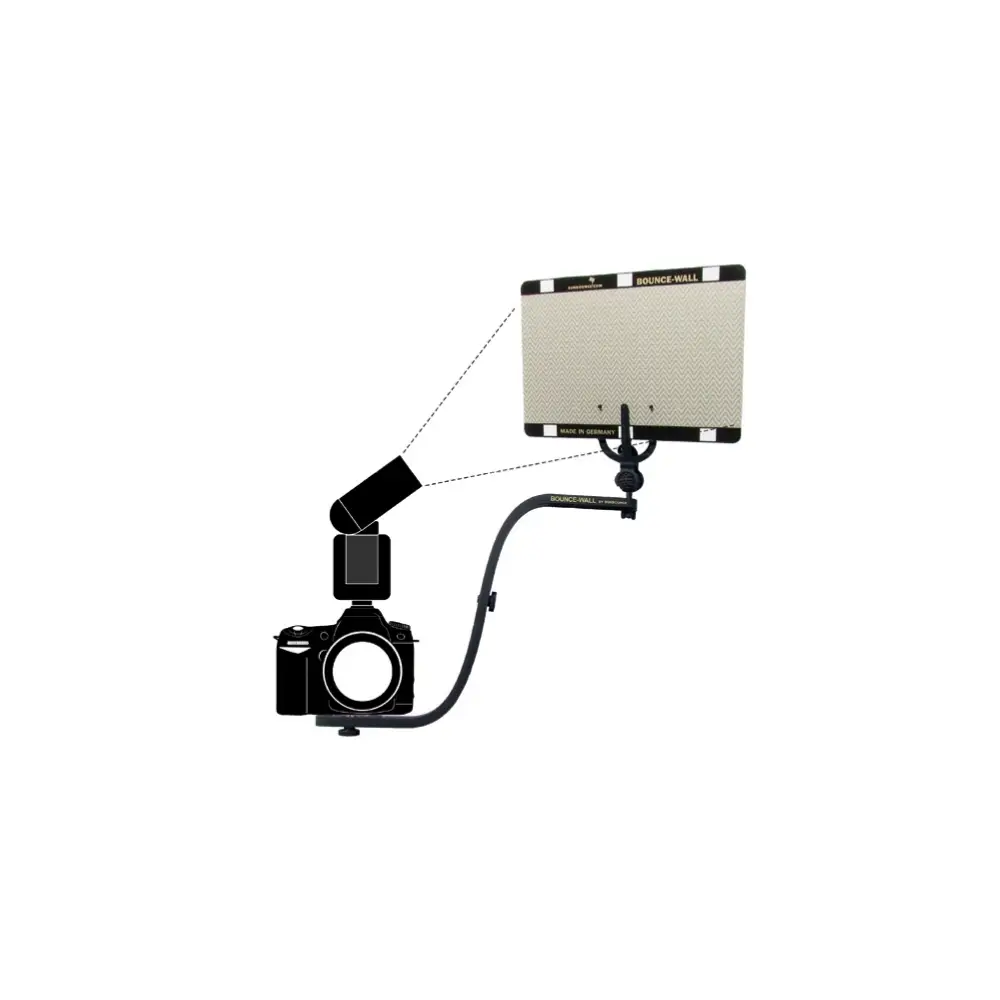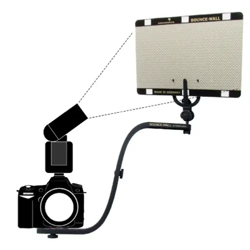 Professionelles Studiolicht aus allen Aufsteckblitzen Unterschiedlich beschichtete "BOUNCE-WALLs" (optional), oder deren weiße Rückseite, bieten Ihnen eine reiche Auswahl an Möglichkeiten das Licht so zu manipulieren, wie Sie es benötigen. Die "BOUNCE WALL" erlaubt eine saubere, vollwertige Nutzung der TTL-Steuerung über die Original-Kontakte von Kamera und Blitz. Der Haltearm besteht aus robustem und federleichtem Spezialkunststoff und kann blitzschnell zerlegt und zusammengesetzt werden; der Reflektor kann dank Kugelgelenk im Winkel flexibel angepasst werden.