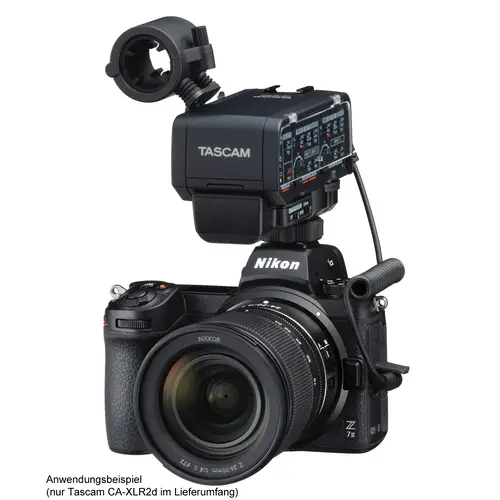Wenn der Blitzschuh Ihrer Kamera weder ein digitales Audiosignal verarbeiten noch den Tascam-Mikrofonadapter mit Strom versorgen kann eignet sich der CA-XLR2d-AN für praktisch jede Kamera, die über einen analogen Audioeingang verfügt. Bringen Sie die mitgelieferte Batteriebox (zwei AA-Batterien) an und verbinden Sie den analogen Ausgang des CA-XLR2d über das mitgelieferte Stereo-Audiokabel mit dem Mikrofon- bzw. Audioeingang der Kamera. Auf diese Weise profitieren Sie von den hochwertigen Mikrofonvorverstärkern und Audioverarbeitungsfunktionen und können den Klang Ihrer Filmaufnahmen deutlich verbessern.