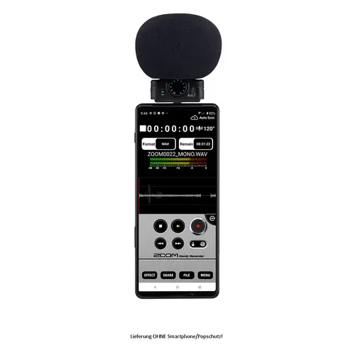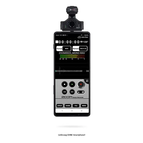 Mit der auf Google Play erhältlichen Zoom Handy Recorder App können Sie Audio mit Ihrem Android-Gerät aufnehmen, mischen und mit anderen teilen.  Laden Sie Ihre Werke direkt auf Soundcloud oder Google Drive hoch.
