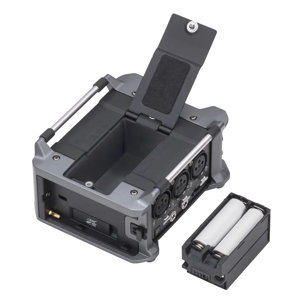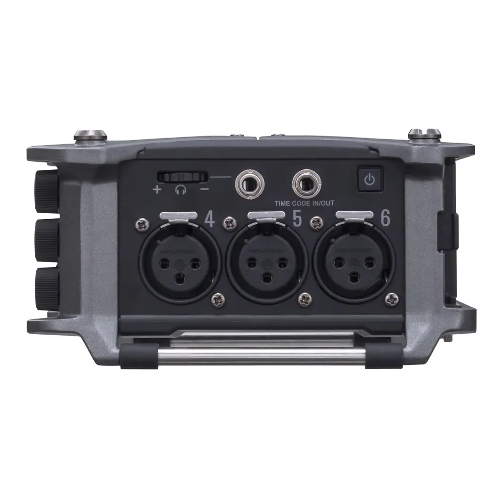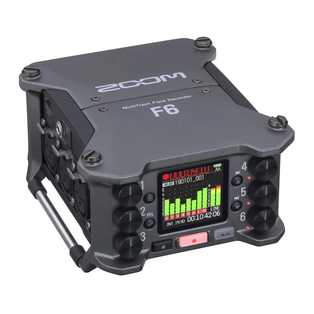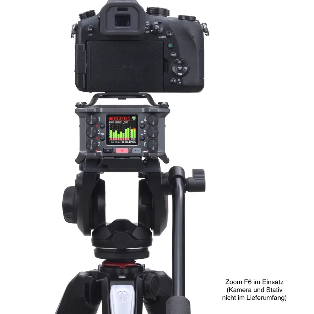 Eigenschaften:• 6-kanaliger 14-Spur Field-Audiorecorder/Mixer• 6 separate Eingänge mit verriegelbaren Neutrik XLR-Buchsen• Hochwertige Mikrofonvorverstärker mit bis zu 75 dB Gain und weniger als -127 dBu EIN• Schaltbare +4 dB Eingänge mit Mic/Line-Option• Advanced Look-Ahead Hybrid Limiter• Zoom AutoMix™ Software• Akkurate Timecode- Ein- und -Ausgabe (0,2 ppm in ein- oder ausgeschaltetem Zustand) über eine 3,5 mm Stereominiklinkenbuchse, Dropframe-/Non-Drop-Formate mit Jam Sync• Drei verschiedene Optionen zur Stromversorgung: 4 x Typ-AA-Batterien, Sony L-Series Akku oder Zoom AD-17 12 V Wechselstromnetzteil• Stereophone, unsymmetrische 3,5 mm Miniklinkenbuchse• Separater Kopfhörer-Ausgang (100 mW) mit Pegelsteller- Steckplatz für SD-/SDHC-/SDXC-Karten mit bis 512 GB • Betrieb als USB-Audio-Interface mit 6 Ein-/4 Ausgängen (bis 96 kHz)• Betrieb als Audio-Interface bei gleichzeitiger Aufnahme auf SD-Karte (bis 48 kHz)• Kostenfreie Steuer-App ZOOM F6 Control für iOS für eine drahtlose Fernsteuerung, die Dateibenennung und die Eingabe von Metadaten